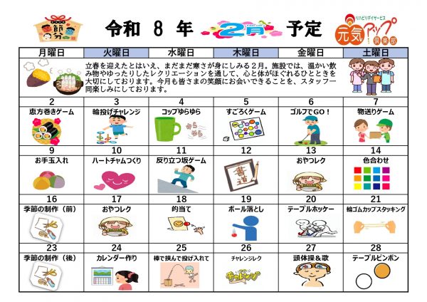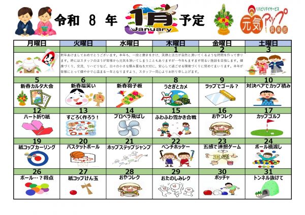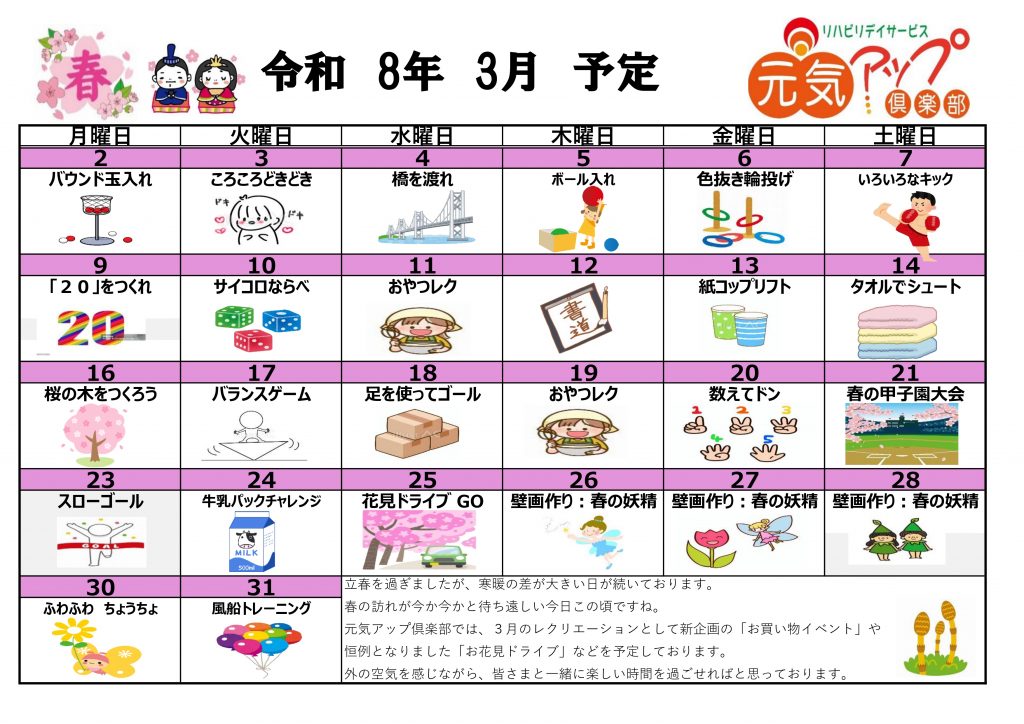 元気アップ俱楽部 レク予定表